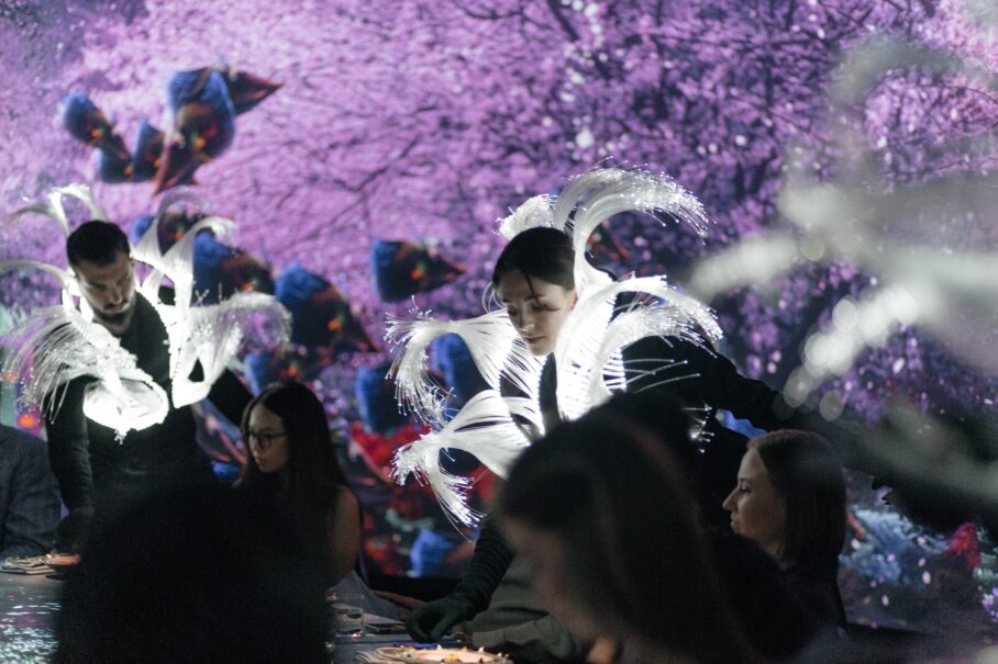 החוויה: האורחים יושבים סביב שולחן מיוחד, ומוקפים בהקרנות של 360 מעלות על הקירות והשולחן עצמו, שיצרו בעזרת בינה מלאכותית. זהו מסע רב-חושי שמספר סיפור באמצעות אוכל, אורות וסאונד.