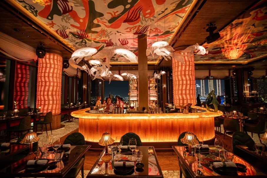 מסעדה אסיאתית יוקרתית שהיא גם יצירת אמנות, עם עיצוב עוצר נשימה בהשראת העולם התת-ימי 🧜♀️.