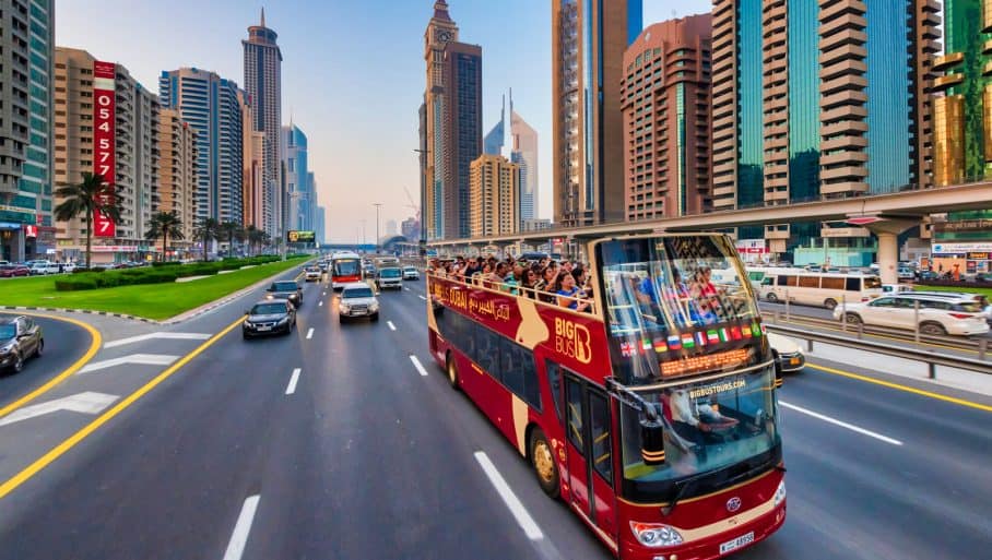 אוטובוס התיירים הופ און הופ אוף מאפשר לתיירי דובאי ליהנות מנסיעה שלווה ברחבי העיר באוטובוס קומותיים עם נוף פנורמי עוצר נשימה של מגדלי העיר, שלל אתריה הידועים ושל רצועת החוף המרהיבה.